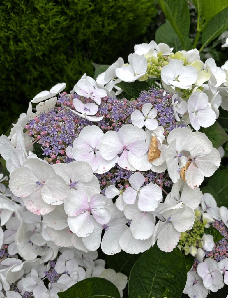 But wait! In the world of hydrangeas, some are more equal than others (if I may). Allow me to lay their cards on the table. Many of the most popular varieties – notably the mophead hydrangeas (Hydrangea macrophylla var. hortensia) – are sterile cultivars, meaning they produce little to no fertile flowers. So, while they may dazzle with their big, blousy blooms, they offer very little in the way of sustenance – no nectar, no pollen – for bees and butterflies. And with biodiversity in crisis, perhaps it’s time to rethink our choices. After all, there are so many beautiful lacecap hydrangeas and other species with fertile, nectar-rich flowers. Surely there’s a better – if not an equally stunning – option? (If you are a bee you’d think so.) Let’s take a look at just a few of the many species worth considering.